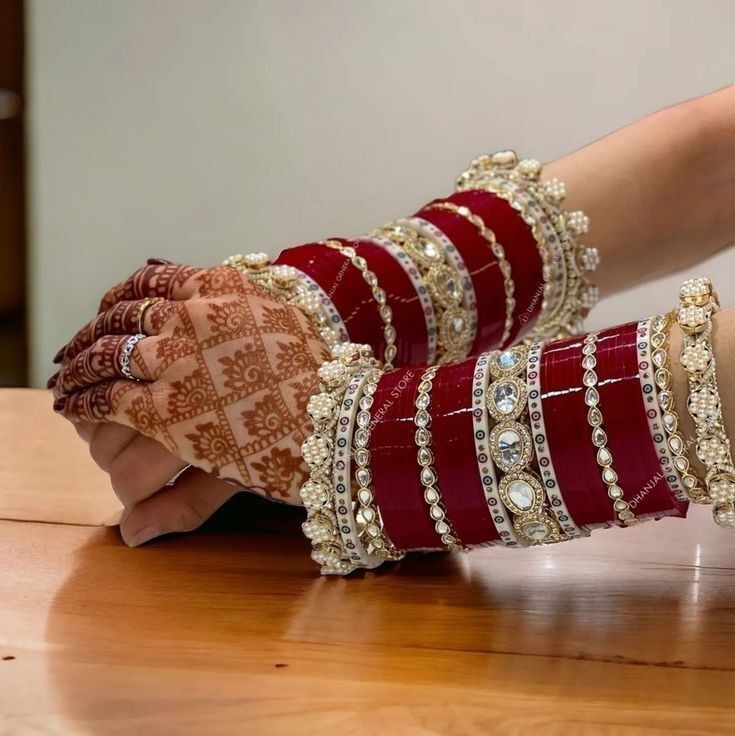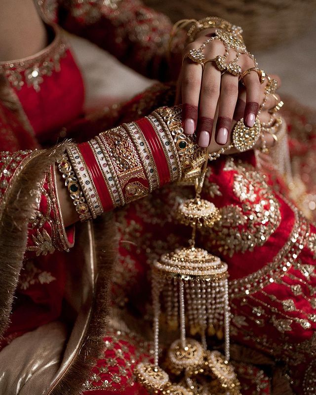 Elegant and richly detailed bangles designed to complement bridal attire.
