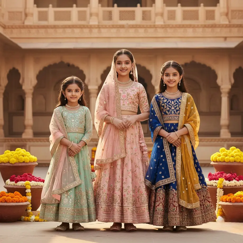 Our girls lehenga collection is designed to make little ones look festive, stylish, and celebration-ready. Featuring beautiful color combinations and flowy silhouettes, these lehengas are ideal for weddings, receptions, and special occasions.