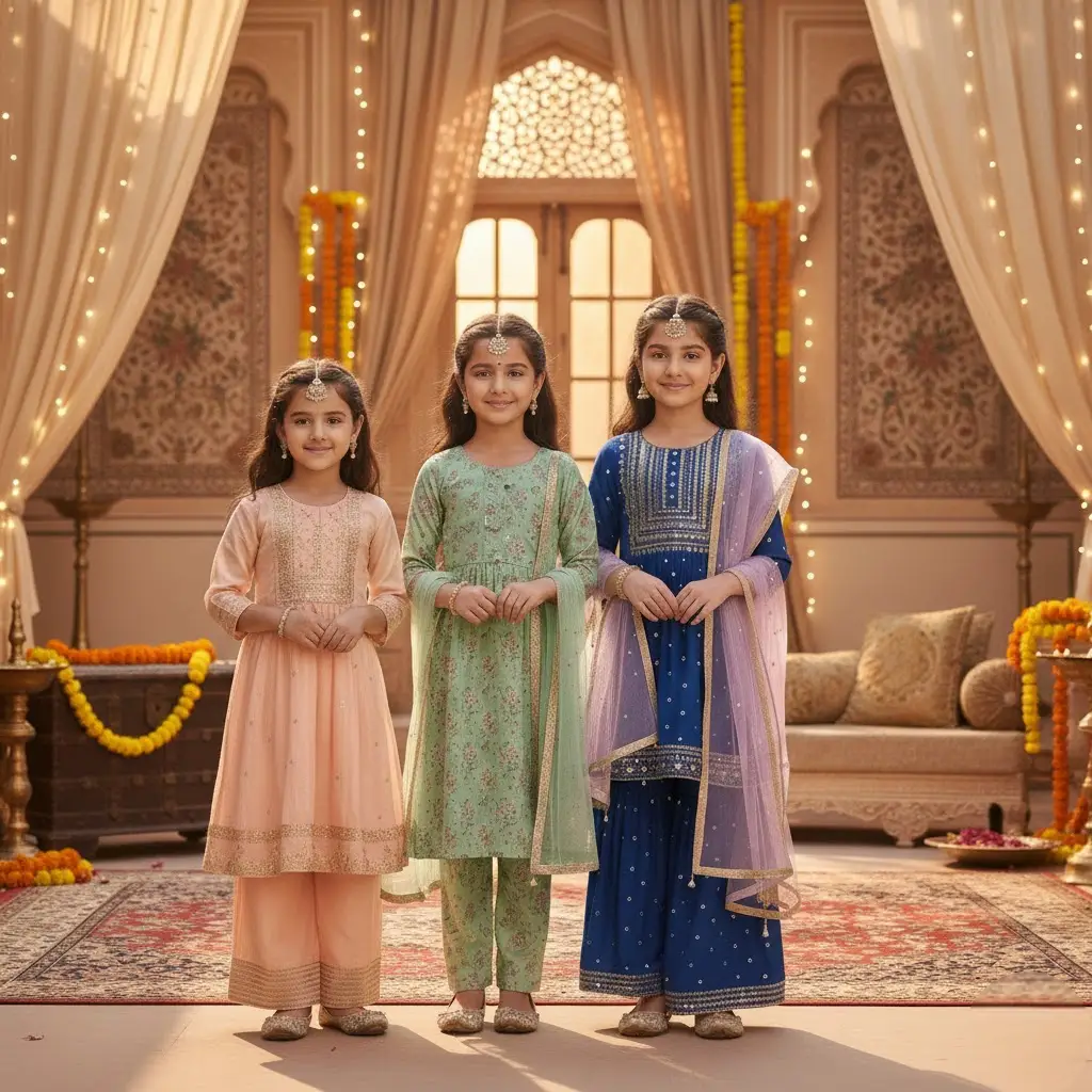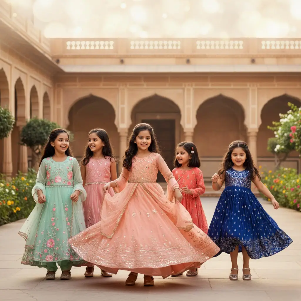 Soft linings and lightweight dupattas ensure a graceful look while keeping kids at ease.